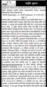 अर्ज करण्याचा पत्ता- कार्यकारी अभियंता, म. रा. वि.वि. कं. मर्या, अमरावती ग्रामीण विभाग मेजर स्टोअर संकुल पॉवर हाउस, वेलकम point, अमरावती मोशी रोड, अमरावती