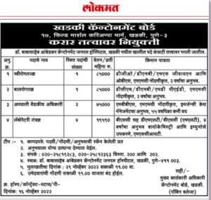 मुलाखतीची पत्ता- डॉ. बाबासाहेब आंबेडकर कॅन्टोनमेंट जनरल हॉस्पीटल, खडकी, पुणे-411003