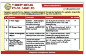 तिरुपती अर्बन को-ऑप बँक नागपूर येथे भरती