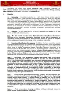 भारतीय सैन्य 137th टेक्निकल पदवीधर कोर्स- जुलै 2023