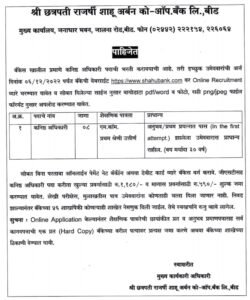 अर्जाची प्रत पाठविण्याचा पत्ता- श्री छत्रपती राजर्षी शाहू अर्बन को-ऑप. बँक लि., बीड मुख्य कार्यालय, जनाधार भवन, जालना रोड, बीड