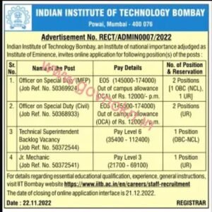 इंडियन इन्स्टिट्यूट ऑफ टेक्नॉलॉजी बॉम्बे अंतर्गत भरती