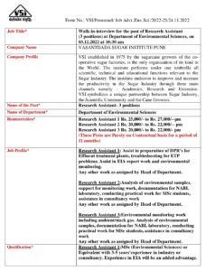 पदाचे नाव- संशोधन सहाय्यक