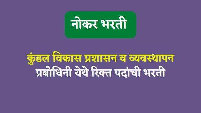 कुंडल विकास, प्रशासन व व्यवस्थापन प्रबोधिनी अंतर्गत भरती