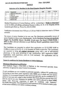 पदाचे नाव- ज्येष्ठ रहिवासी(Senior Resident)