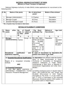 राष्ट्रीय महामार्ग प्राधिकरण(NHAI) अंतर्गत भरती