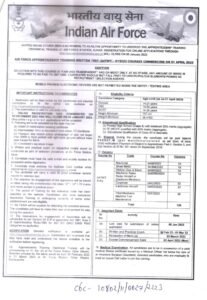 पदाचे नाव- हवाई दल शिकाऊ प्रशिक्षण लेखी परीक्षा (A4TWT)-01/2023