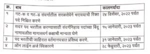 वित्त विभागाच्या दि. ३१.१०.२०२२ च्या शासन निर्णयान्वये देण्यात आलेल्या मान्यतेस अनुसरुन आदिवासी विकास विभागाच्या सुधारित आकृतीबंधानुसार गट-क व गट-ड संवर्गातील सरळसेवेने भरावयाच्या पदांपैकी रिक्त असलेली पदे भरण्याची कार्यवाही ३० जून, २०२३ अखेर पर्यंत पूर्ण करणे आवश्यक आहे. सबब, यासंदर्भात खालीलप्रमाणे वेळापत्रक निश्चित करुन देण्यात येत आहेत.