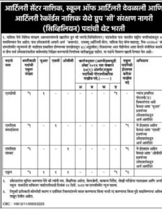 अर्ज करण्याचा पत्ता- कमांडंट, मुख्यालय, आर्टिलरी सेंटर, नाशिक रोड कॅम्प – 422102