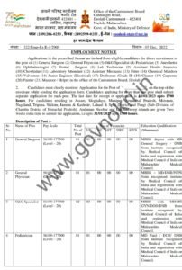 अर्ज करण्याचा पत्ता- औरंगाबाद कॅन्टोन्मेंट बोर्डाचे मुख्य कार्यकारी अधिकारी कार्यालय, बंगला क्र. 10, आयकर कार्यालयासमोर, नगर रोड, छावणी औरंगाबाद – 431 002 (महाराष्ट्र)