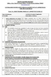 शैक्षणिक पात्रता- मॅट्रिक (मॅट्रिक्युलेशन किंवा 10+2 परीक्षा प्रणालीमध्ये 10 वी) मान्यताप्राप्त मंडळाकडून किमान 50% गुणांसह (अतिरिक्त विषय वगळून) आणि NCVT द्वारे प्रदान केलेले ITI पास प्रमाणपत्र (ज्या ट्रेडमध्ये अॅप्रेंटिसशिप करायची आहे) /SCVT.