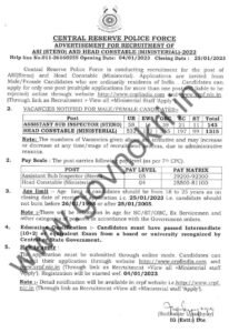 पदाचे नाव- सहाय्यक उपनिरीक्षक (स्टेनो), हेड कॉन्स्टेबल