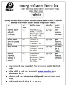 महाराष्ट्र उद्योजकता विकास केंद्रात भरती