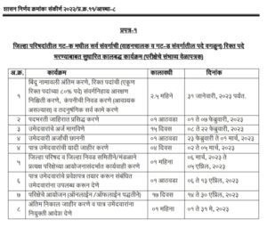 जिल्हा परिषदांतील गट-क मधील सर्व संवर्गाची (वाहनचालक व गट-ड संवर्गातील पदे वगळून) रिक्त पदे संवर्गनिहाय आरक्षण नियमानुसार निश्चित करून जिल्हा परिषदांनी त्यांच्या स्तरावर जिल्हा निवड मंडळामार्फत परीक्षेचे संभाव्य वेळापत्रक देण्यात आले आहे.