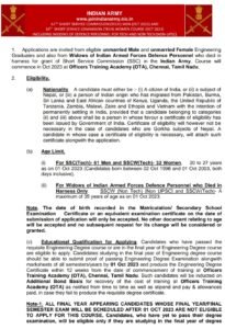 शैक्षणिक पात्रता- आवश्यक अभियांत्रिकी पदवी अभ्यासक्रम उत्तीर्ण केलेले किंवा अभियांत्रिकी पदवी अभ्यासक्रमाच्या अंतिम वर्षात असलेले उमेदवार अर्ज करण्यास पात्र आहेत. मरण पावलेल्या भारतीय सशस्त्र दलाच्या संरक्षण कर्मचार्यांच्या विधवांसाठी शैक्षणिक
