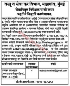 पदाचे नाव- राज्य कर निरीक्षक
