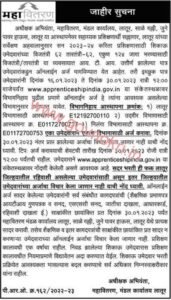 नोकरी विषयी लातूर महावितरण विभागात ‘अप्रेंटीस’ पदाची भरती By Chetan Patil On Jan 19, 2023 0 Share पदाचे नाव- शिकाऊ पदसंख्या- १२४ पदे शैक्षणिक पात्रता- 10 वी, ITI उत्तीर्ण नोकरी ठिकाण- लातूर अर्ज करण्याची पद्धत- ऑनलाइन अर्ज करण्याची मुदत- 30 जानेवारी 2023 अधिकृत वेबसाईट- www.mahadiscom.in 0 Share FacebookTwitterGoogle+ReddItWhatsAppPinterestEmail