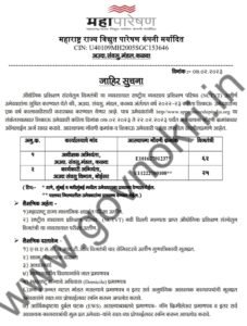 नोकरी विषयी महापारेषण अंतर्गत ‘अप्रेंटीस’ पदाची भरती By Chetan Patil On Feb 17, 2023 0 Share पदाचे नाव- अप्रेंटीस (शिकाऊ) पदसंख्या- ६२ पदे शैक्षणिक पात्रता- SSC, NCVT नोकरी ठिकाण- मुंबई अर्ज करण्याची पद्धत- ऑनलाइन अर्ज करण्याची मुदत- 22 फेब्रुवारी 2023 अधिकृत वेबसाईट- www.mahatransco.in 0 Share FacebookTwitterGoogle+ReddItWhatsAppPinterestEmail