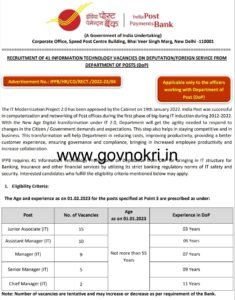 इंडियन पोस्ट पेमेंट्स बँकेत मोठी भरती