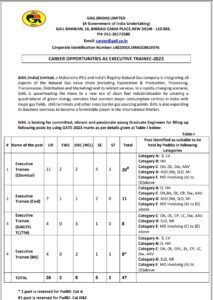 गेल इंडिया लिमिटेड मध्ये विविध पदांसाठी भरती