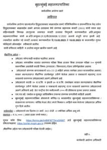 बृहन्मुंबई महानगरपालिका क्षेत्रामध्ये कोविड-19 कालावधीत बृहन्मुंबई महानगरपालिकेच्या / शासनाच्या रुग्णालय / कोविड केअर सेंटर मध्ये किमान ६ माहिने काम केलेल्या उमेदवारास अधिक गुण दिले जातील.