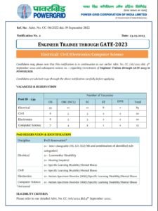नोकरी विषयी पॉवर ग्रिड कॉर्पोरेशन मध्ये ‘अभियंता’ पदाची भरती By Chetan Patil On Mar 31, 2023 0 Share पदाचे नाव- अभियंता प्रशिक्षणार्थी पदसंख्या- १३८ पदे शैक्षणिक पात्रता- B.E./ B.Tech/ B.Sc (Engg.) अर्ज करण्याची पद्धत- ऑनलाइन अर्ज करण्याची मुदत- 18 एप्रिल 2023 अधिकृत वेबसाईट- https://www.powergrid.in 0 Share FacebookTwitterGoogle+ReddItWhatsAppPinterestEmail