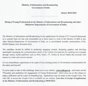 माहिती आणि प्रसारण मंत्रालयात काम करण्याची सुवर्णसंधी
