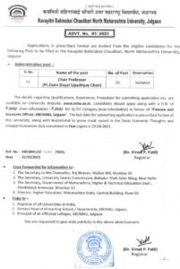 अर्ज करण्याचा पत्ता- कवयित्री बहिणाबाई चौधरी उत्तर महाराष्ट्र विद्यापीठ, जळगाव