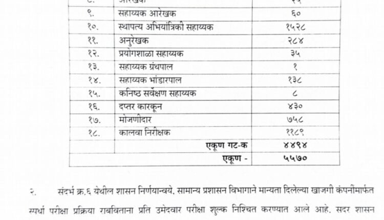 वरील शासन निर्णय व पत्राच्या अनुषंगाने, आदेश आहेत की, खालील तक्त्यात नमूद करण्यात आलेल्या संवर्गातील नामनिर्देशनाची पदे सरळसेवेने भरण्याबाबत आवश्यक ती कार्यवाही करण्याचे आदेश महेश बागडे, अवर सचिव, महाराष्ट्र शासन यांनी दिले आहे.