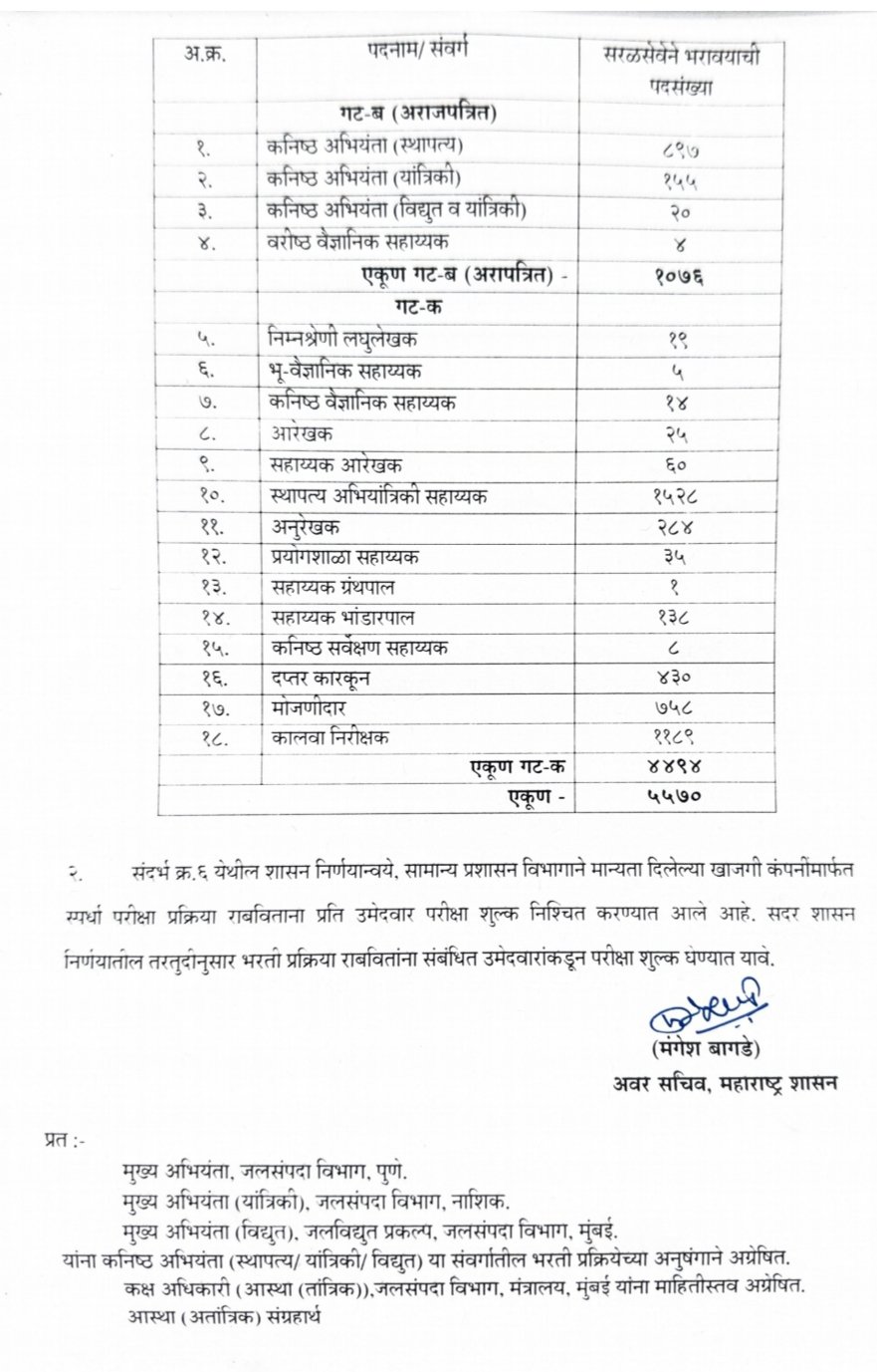 विद्यार्थ्यांनो लागा तयारीला; जलसंपदा विभागांतर्गत राज्यातील सर्व कार्यालयांतील गट-क संवर्गातील रिक्त पदे भरण्याबाबत शासन परिपत्रक जारी
