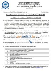 आईटी इंदौर ने असिस्टेंट प्रोफेसर पदासाठी भरती जाहीर केली आहे. भारतीय तंत्रज्ञान संस्था, इंदौर ने एकूण 34 संकाय पदांची भरती करण्यासाठी वेबसाइटवर एक अधिसूचना प्रकाशित केली आहे. योग्य आणि इच्छुक उमेदवार या भरतीसाठी IIT इंदौर की अधिकृत साइट IIT.ac.in वर जाकर अर्ज करू शकतात. अर्ज करण्याची अंतिम तारीख 21 एप्रिल 2023 आहे.