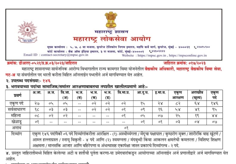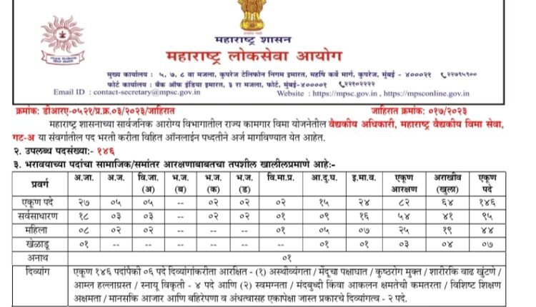 MPSC वैद्यकीय विमा सेवा अंतर्गत मेडिकल ऑफिसर पदाची भरती