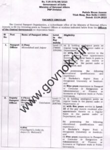 पदाचे नाव- पासपोर्ट अधिकारी, उप पासपोर्ट अधिकारी