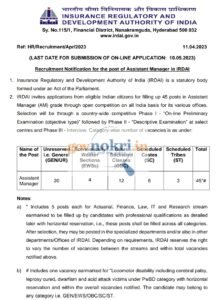 भारतीय विमा नियामक आणि विकास प्राधिकरणात भरती
