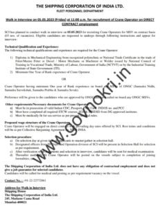 मुलाखतीचा पत्ता- शिपिंग हाऊस द शिपिंग कॉर्पोरेशन ऑफ इंडिया लिमिटेड 245, मॅडम कामा रोड मुंबई-400021