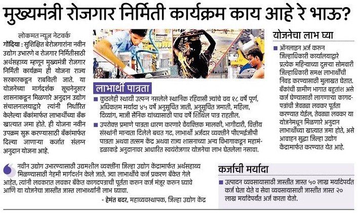 सुशिक्षित बेरोजगार व उद्योग सुरु करू इच्छिणाऱ्या तरुणांना स्वतःचा एखादा लघु उद्योग सुरु करता यावा या उद्देशाने मुख्यमंत्री रोजगार निर्मिति योजना सुरू करण्यात आली. यामध्ये महिलांना आणि तरुणां देखील व्यावसाय करण्यासाठी कर्ज घेता येतं. महिलांसाठी खास या योजनेत 30 टक्के आरक्षण असल्याने अनेक महिलांना याचा फायदा मिळत आहे. छोटे छोटे उद्योग सुरू करून महिला सक्षम होत आहेत. यासाठी तुम्ही ऑनालईन अर्ज वेबसाईटवर जाऊन करू शकता.