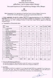 दक्षिण पूर्व मध्य रेल्वेत ‘अप्रेंटिस’ पदाची मोठी भरती