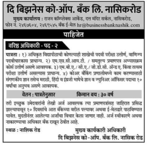मुख्य कार्यकारी अधिकारी दि बिझनेस को-ऑप. बँक लि. नाशिक