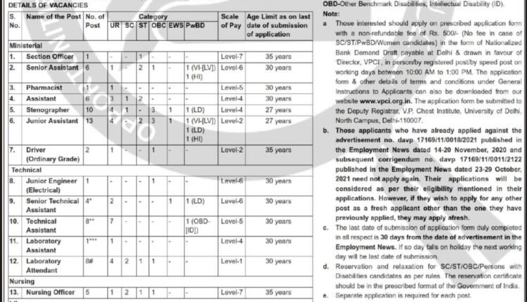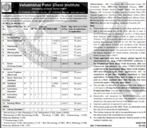 वल्लभभाई पटेल चेस्ट इन्स्टिट्यूट, दिल्ली येथे भरती