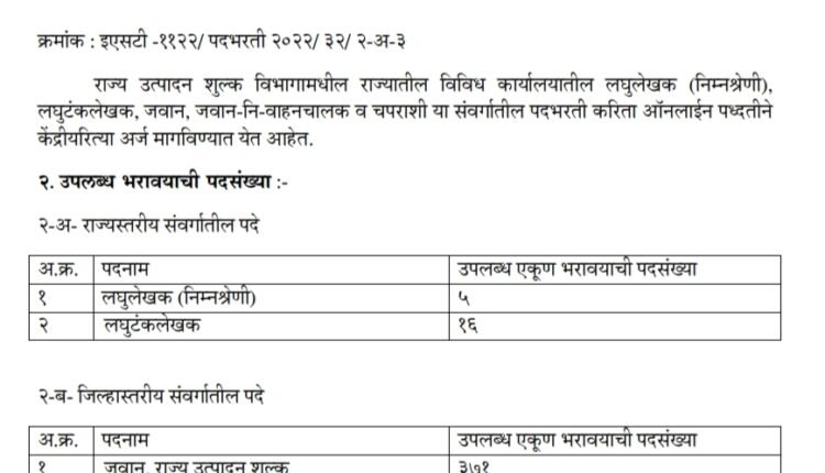 महाराष्ट्र राज्य उत्पादन शुल्क विभागात 512 जागांसाठी भरती