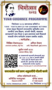 भिमोत्सव २०२३ समन्वयक समिती व YUVA-YOUTH UNITED FOR VISIONARY ACTIONS यांच्या संयुक्त विद्यमाने समाजातील सुशिक्षीत तरुण तरुणींना उच्च शिक्षण, चांगली नोकरी, व्यवसाय त्याचप्रमाणे जात वैधता व इतर प्रमाणपत्र कसे मिळवावे यासाठी योग्य मार्गदर्शन उपक्रम राबवीत आहोत.