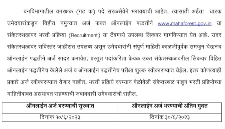 महाराष्ट्र वन विभागात 2417 जागांची मेगा भरती