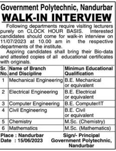 शासकीय पॉलिटेक्निक महाविद्यालयात नंदुरबार येथे थेट मुलाखतीद्वारे भरती