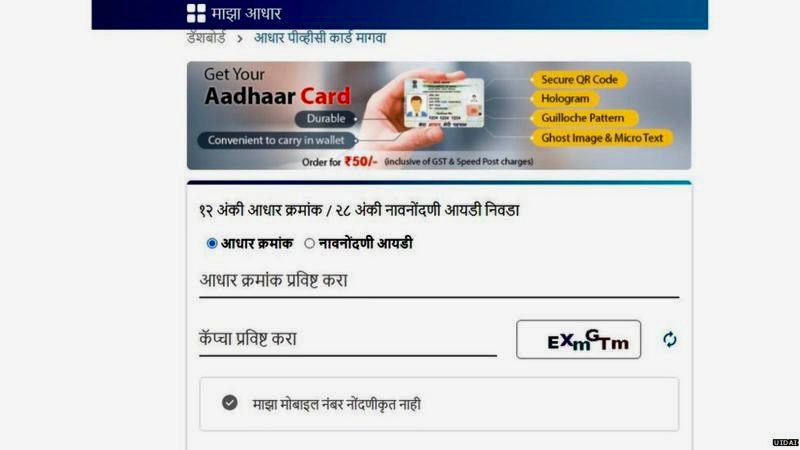 आधार PVC कार्ड काढायची अधिकृत वेबसाईट http://uidai.gov.in