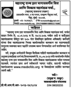 अर्ज पाठविण्याचा पता- महाराष्ट्र राज्य इतर मागासवर्गीय वित्त आणि विकास महामंडळ, प्रशासकीय भवन, 4 था मजला, रामकृष्ण चेंबूरलर मार्ग. चेंबूर, मुंबई – 400071