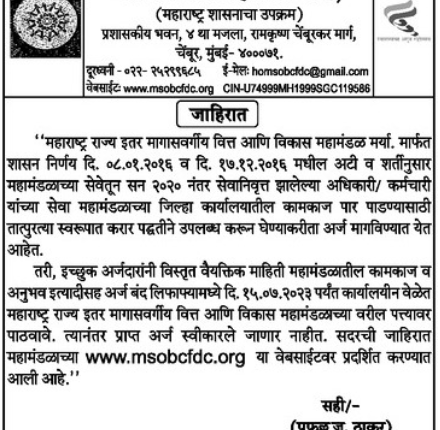 अधिकृत वेबसाईट- www.msobcfdc.org
