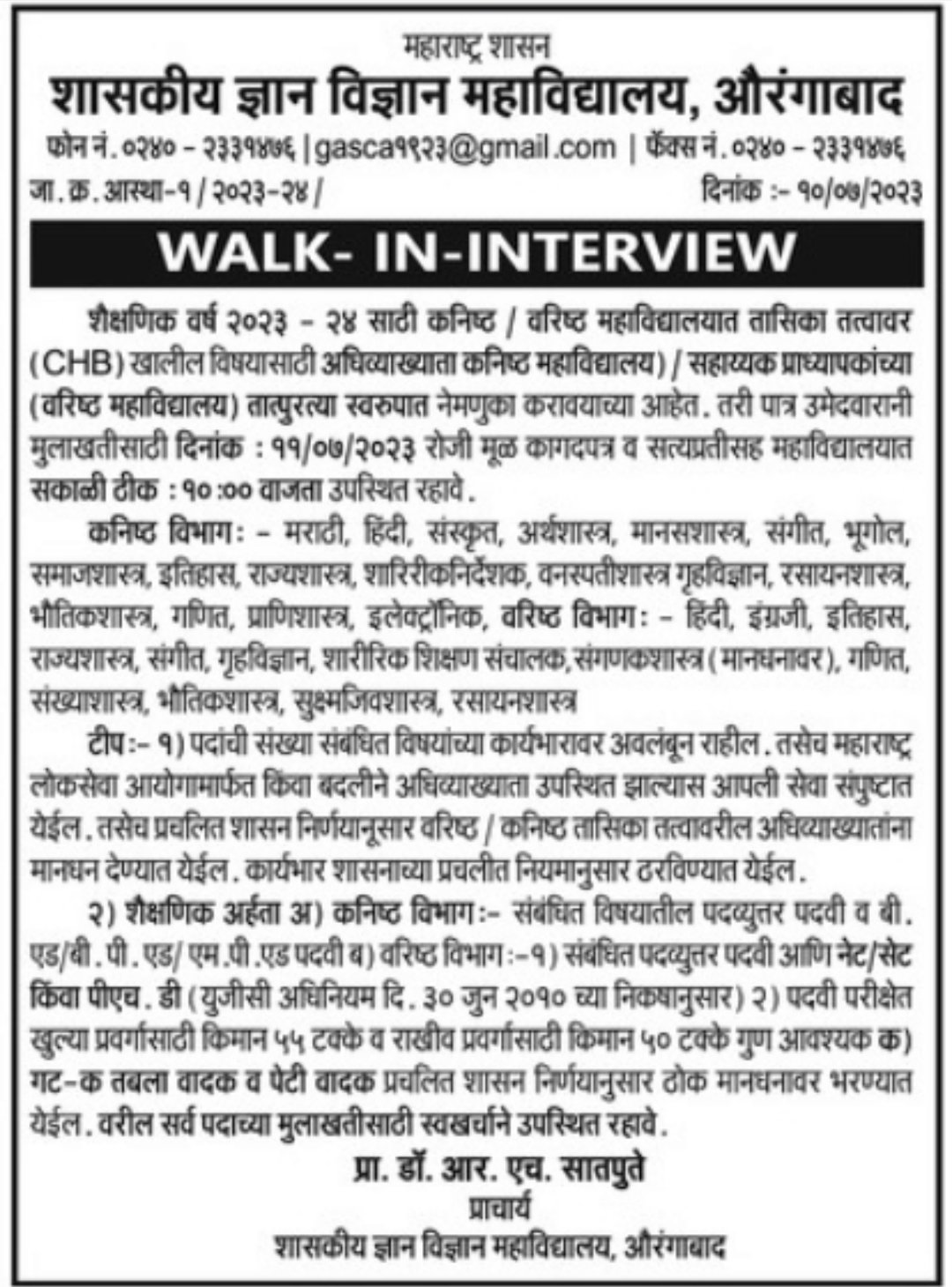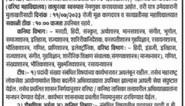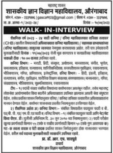 मुलाखतीची पत्ता- शासकीय कला व विज्ञान महाविद्यालय, सुभेदार गेस्ट हाऊसजवळ, किल्ले आर्क, औरंगाबाद 431004.