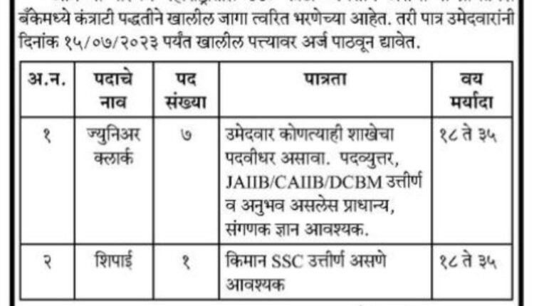 नांदणी सहकारी बँक कोल्हापूर येथे भरती