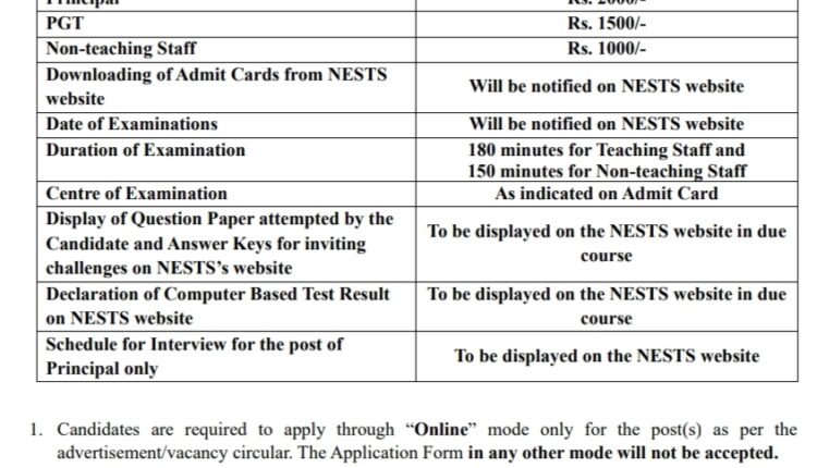 पदाचे नाव- प्रिन्सिपल, पीजीटी, अकाउंटंट, ज्युनियर सेक्रेटरीएट असिस्टंट (जेएसए), लॅब अटेंडंट