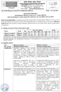 बँक ऑफ महाराष्ट्र मध्ये 400 जागांसाठी भरती